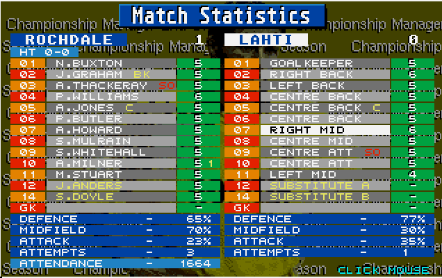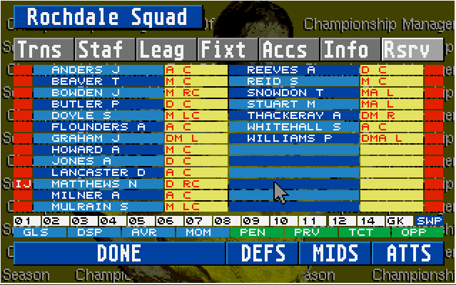 A bit of transfer market action sees us move on a few fringe players, including most of the original attacking line up, and bring in some new blood – Karl Connoly, Simon Collins, Richard Hancox, Mark Limbert, Jodie Craddock and old CM legend and favourite Danny Carter.