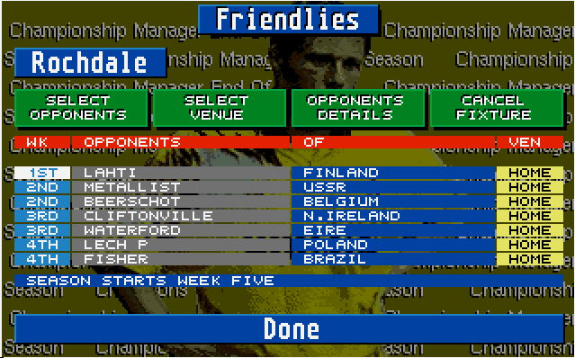 Loading up CM93 EoS update with Klinsman, Dumitrescu, Daniel Amokachi et al. Thought about playing ChampMan Italia and going with “Quarantina”, but have gone for a club I’ve thought about playing for a while, Rochdale.