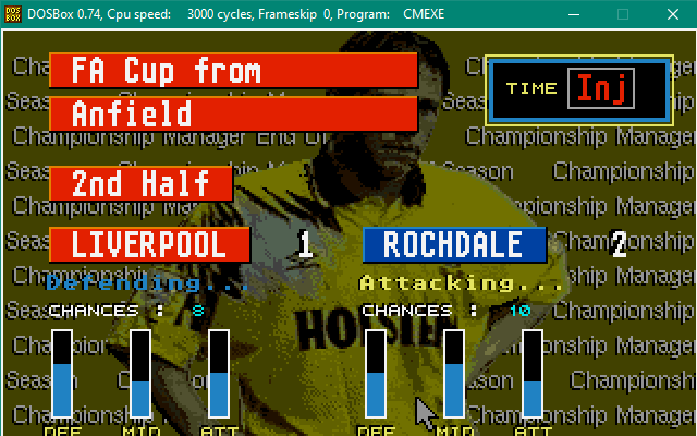 And now Liverpool come to Sandy Lane, and they didn’t come to play nice! Early in the first half they target Carter, injuring him, and Matteo gets away with it! Rob Jones then scores for Liverpool, but Andy Howard quickly equalises before half time. Second half, the tackles continue to fly in and our sub Simon Collins gets injured too, this time Paul Stephenson, recent signing from Luton Town as a back up striker, doesn’t get away with it and recieves a red, finally! It finishes 1-1 and we get to go to Anfield!