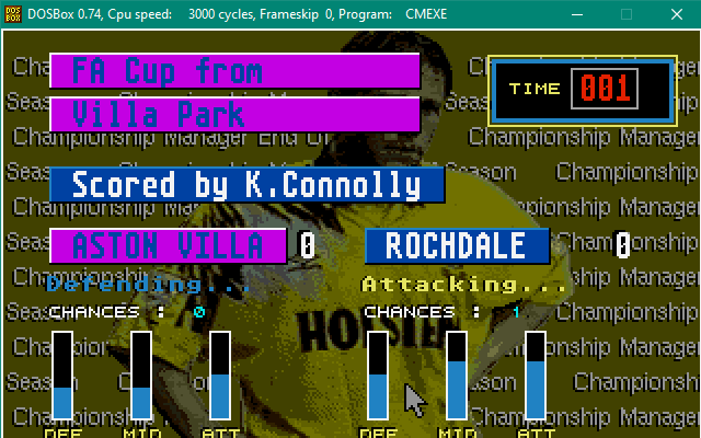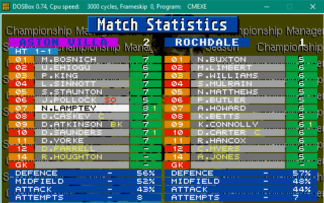 It doesn’t let up as next we go to Villa Park. We get off to the best possible start, Karl Connolly scoring in the opening minute! But have we “scored to early”? It starts to look that way going in drawing 1-1 at the break, with Championship Manager Legend Nii Lamptey scoring for Villa. Dean Saunders puts Villa ahead in the second half and despite Jamie Pollock seeing a red card for headbutting Carter, Villa hold on for the win and we’re out at the quarter final stage after another fantastic cup run.