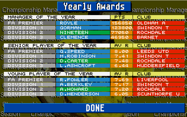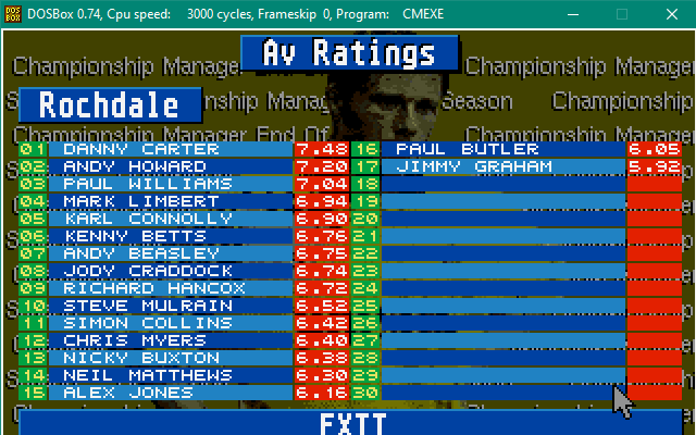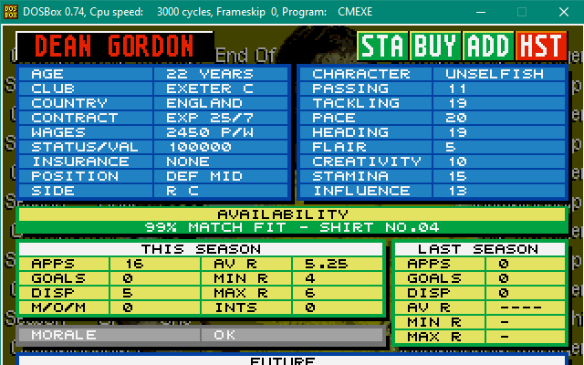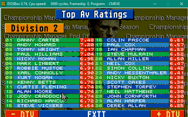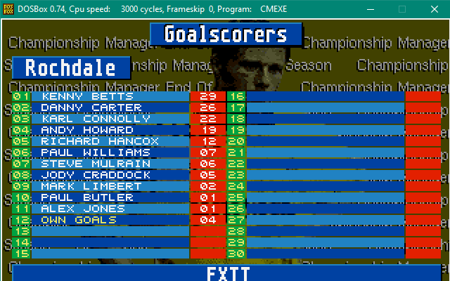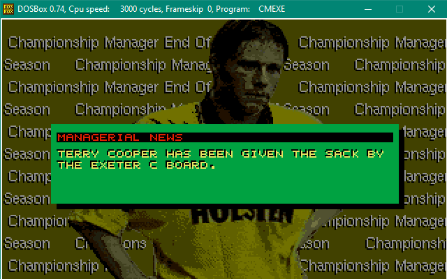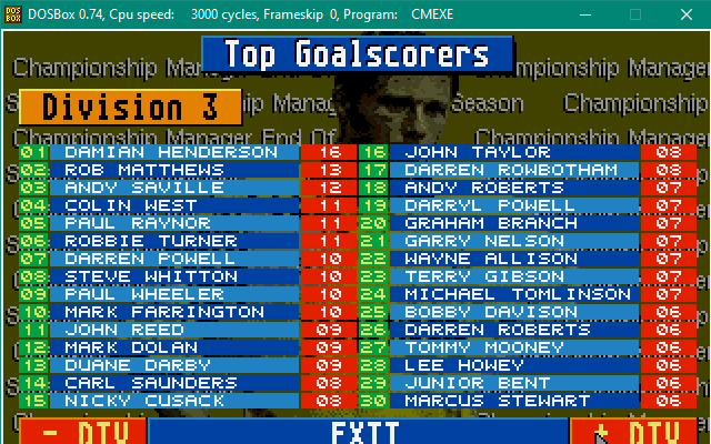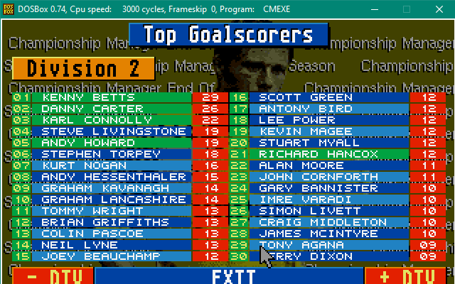 In shocking news, Exeter City are relegated from the football league, taking Championship Manager Legend Dean Gordon with them! Other big names dropping out of the football league with him are Alan Tonge, Stuart Storer, Jimmy Quinn, Steve McMahon and Jason Cousins!