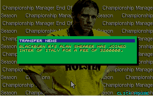 Over the summer Alan Shearer moves to Inter for a bargain £3.2 million, as Marc Hottiger goeas to Kaiserslautern for £2.8 million! Viv Anderson calls it a day and I get another pay rise!