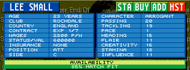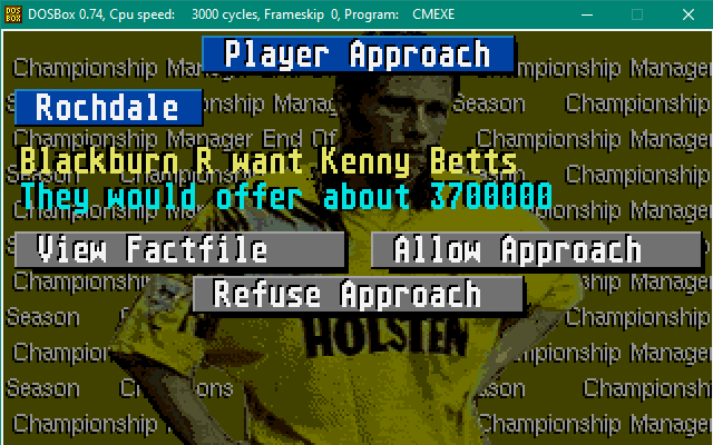 We’ve got a reserve team graduate come through, Shaun James MC, seems decent enough so we’ll keep him and see how he does. Previous seasons graduates are holding their own as squad players, Brian McPherson and Lee Small both improving their values. The usual wage increase demands are met, deservedly, having won the league I guess! Kenny Betts is now worth £3.7m after last seasons goals and ratings! And elicits a cheeky offer from our rivals Blackburn! No chance.