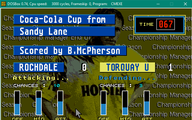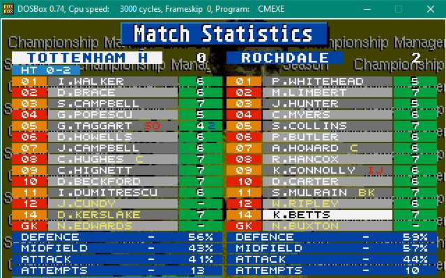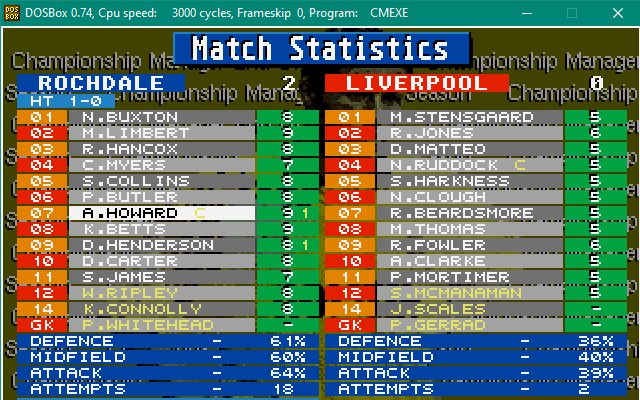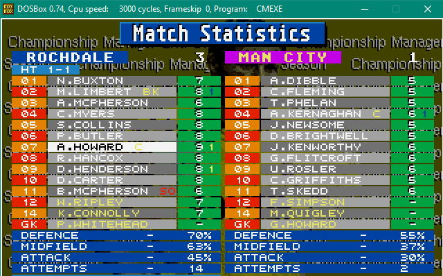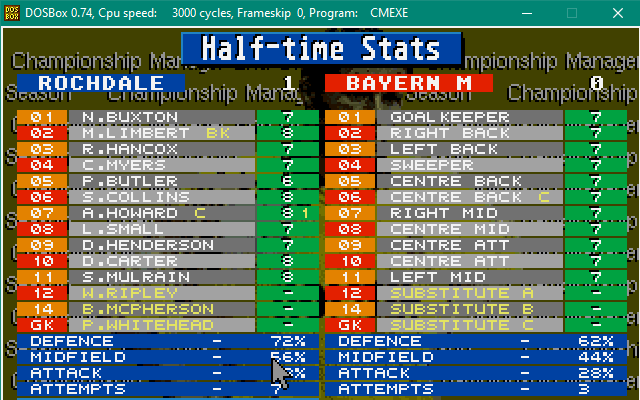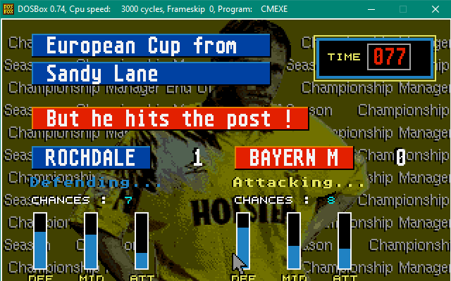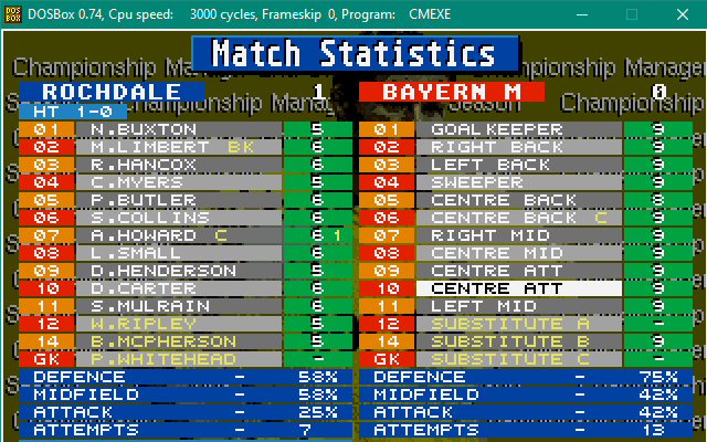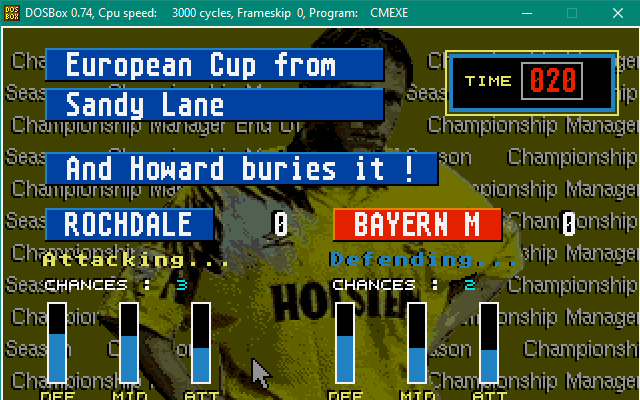 It’s a cold, wet Tuesday night in Rochdale (I assume), as Bayern, led by Centre-Att, take the field. There’s not many chances as we hold our own in the opening 20 minutes before Danny Carter gets upended in the area and it’s a penalty. Captain Howard steps up and buries it past their Goalkeeper! We’re 1-0 up against Bayern!
