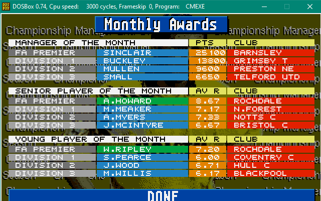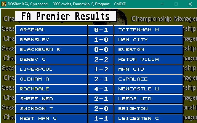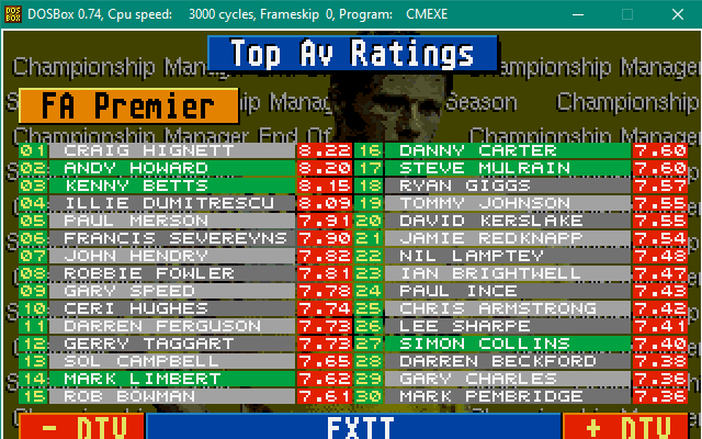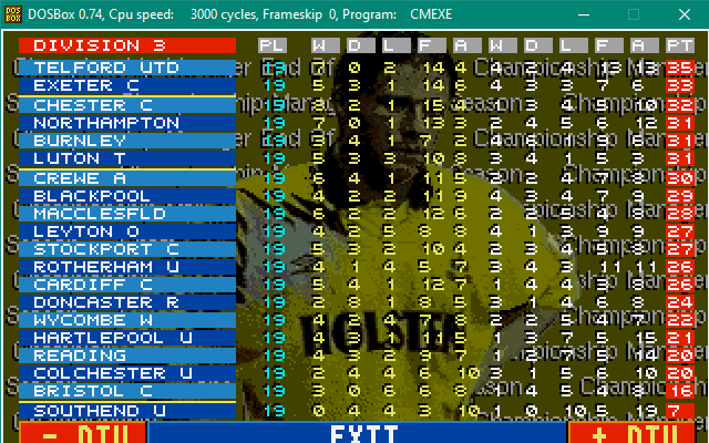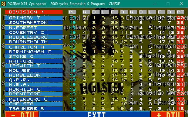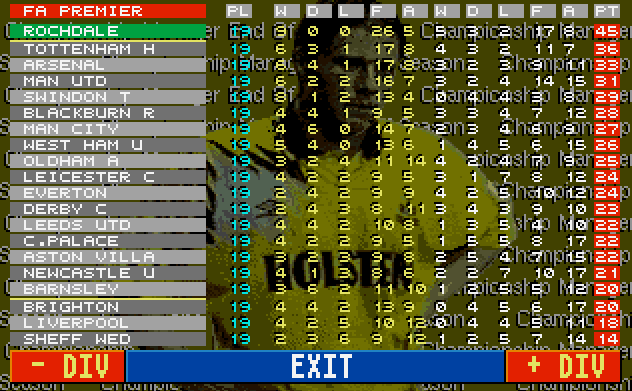 In Division 1 Grimsby lead the race for the Premier League, Southampton again trying to get back up, as Chelsea still under George Graham are struggling and facing Division 2! In the Third, former non-league team Telford are top, Exeter City who have rejoined the league after dropping out a few seasons back, are second. Southend the obvious favourites to go down.
