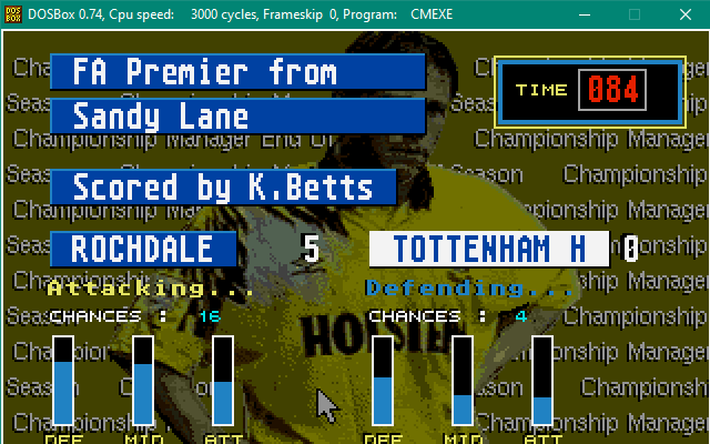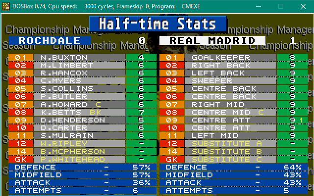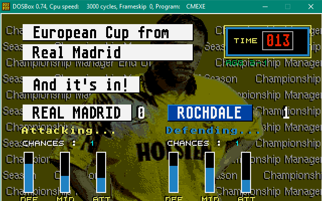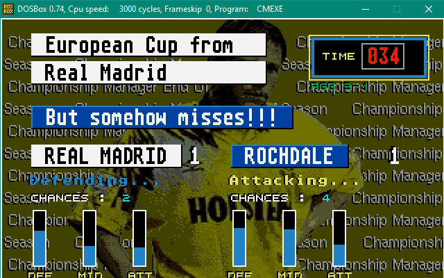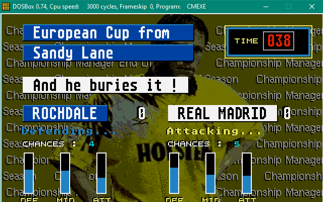 It gives us a good boost as we go to Spain and hope to give a decent account of ourselves. It starts of brilliantly with Chris Myers scoring and we have an away goal, one more needed! Madrid get themselves back into it quickly as their No.9 get clean through and slides it past Buxton to equalise. We have a great chance to retake the league as Carter rounds the keeper but somehow misses!!!