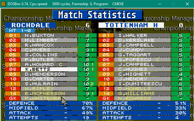 Our lead at the top is 7 points following those couple of defeats, but our three main chasers, Tottenham, Arsenal and Swindon have failed to really take advantage of our slips, swapping 2nd, 3rd and 4th between them and we pull away again with back to back 4-0 wins over West Ham and Oldham, before again slipping up losing 2-1 at Newcastle! Betts again showing why he’s the best rated player in the league and England’s no 9.