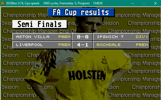 We go into our first ever FA Cup Semi-Final with some confidence though, against a Liverpool team that have struggled this season but managed to claw themselves out of the relegation zone to 14th having been way adfrift early in the season, but they’re still at risk of going down. It’s a fairly scrappy affair the first half isn’t great to watch but it’s a goal apiece at half time. In the second half, Jamie Redknapp steps up and we don’t have an answer to him as he scores and leads them in a man of the match performance to dump us out one round before Wembley, 4-1!