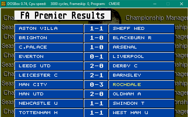 We go to Man City knowing a win coupled with less than a win from Spurs sees us lift the title. This time we see off City with a 3-0 win, after not sealing the title last season at Maine Road and having to wait another week, and Captain Howard lifts the trophy as Spurs only manage a draw with West Ham. Champions again as Rochdale prove it wasn’t just a fluke one off. We’re here to stay!
