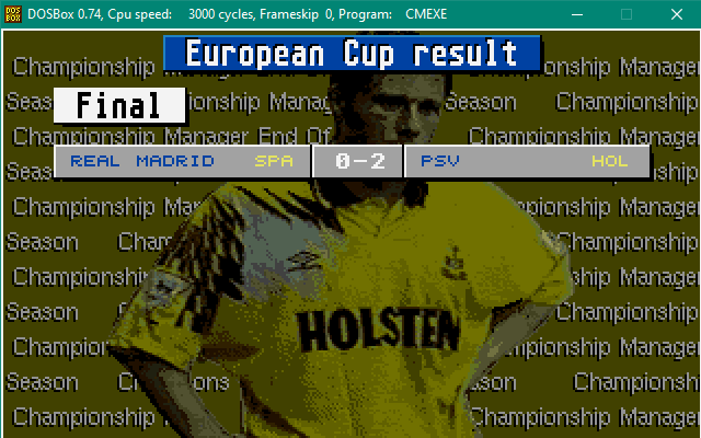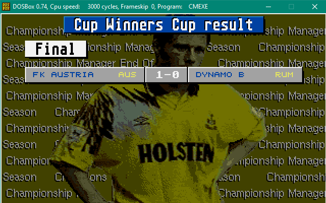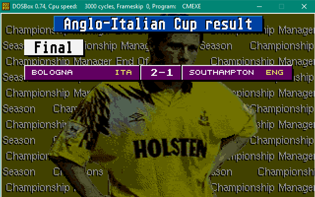 Bologna beat Southampton in the Anglo-Italian Cup final, and there are surprise winners of the Cup Winners Cup as FK Austria beat Dynamo Bucharest. Athletico Bilbao beat Sampdoria in the UEFA Cup, and PSV defeat our vanquishers Real Madrid in the European Cup Final. Aston Villa lift the FA Cup seeing off our Semi-Final victors Liverpool 2-0.