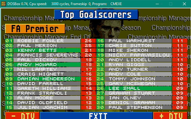 Wednesday go down in 20th, taking with them Chris Bart-Williams, Steve McManaman and England stalwart Peter Atherton amongst others, joining them in Division 1 are Brighton who just couldn’t compete having been promoted last season, and shockingly Blackburn Rovers, who haven’t really been the same since Shearer left. Bargains ahoy as Warhurst, Barmby, Sutton and Roy Keane all drop with them!