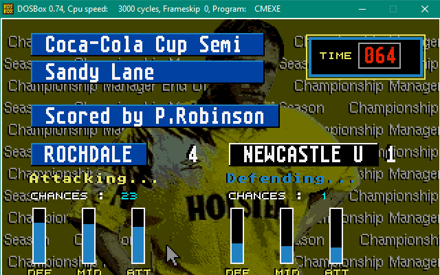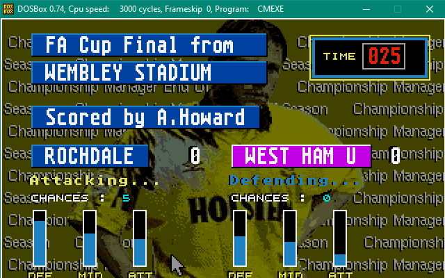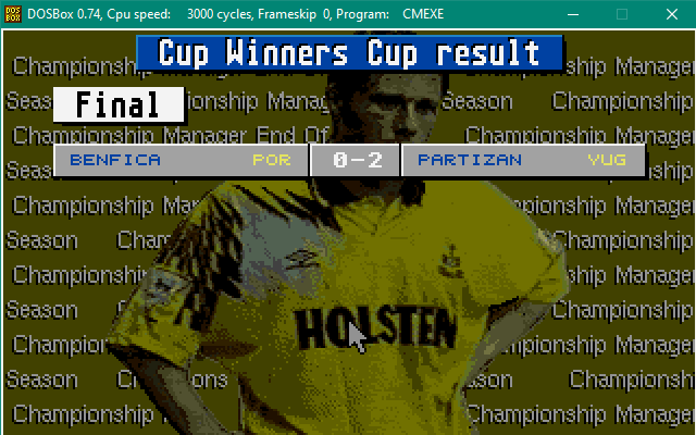 Partizan win the Cup Winners Cup against Benfica then it’s our turn in another final, playing against West Ham for the FA Cup. It follows a similar pattern to our last final, dominating the early exchanges and on 25 minutes again, just like in the league cup final, Howard bangs one in. He loves a big game and a cup final! We restrict the Hammers to a couple of half chances and are under no real threat, and Robinson makes sure towards the end with a second to seal the win and give us an unprecedented domestic treble!