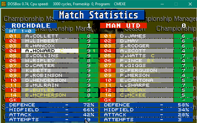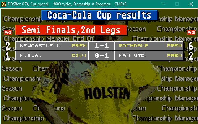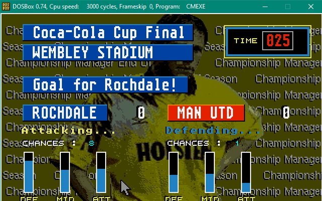A short trip to Oldham and a great 2-0 win sets us up nicely for our first cup final against Man Utd. We’ve got a full squad and go in full strength. It’s one way traffic in our favour in the opening 25 minutes as we squander a good few chances, then our Captain Andy Howard takes things in hand and smashes one in to give us the lead. We’re just too good for United as they can barely find a way out of their half, and though we continue to create numerous chances we can’t find a second. It’s fine though as they offer little more threat and we win our first knockout trophy thanks to Captain Howards goal!