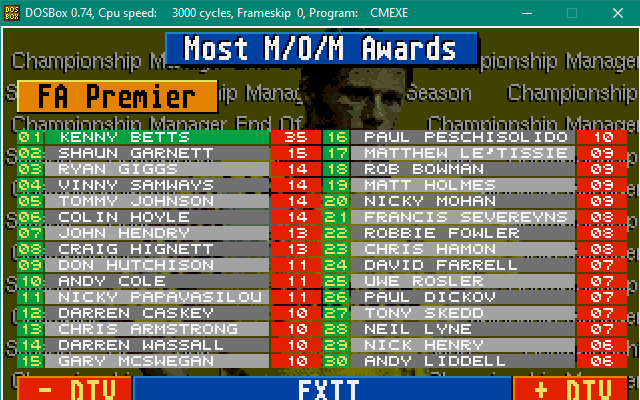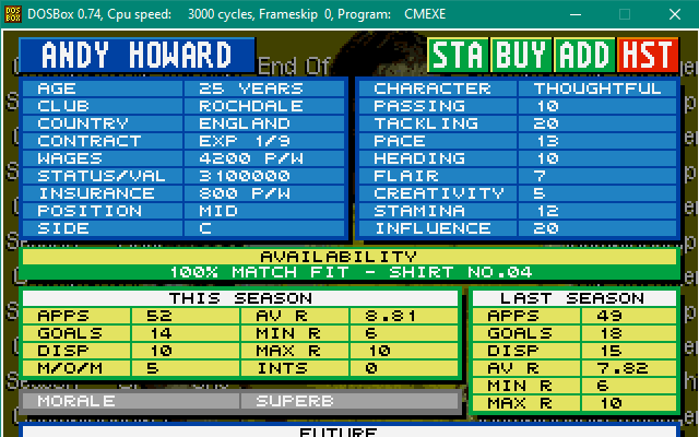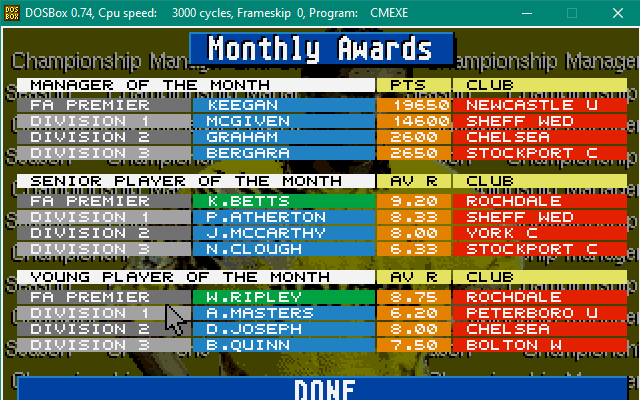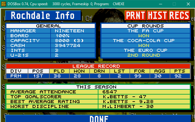 Kenny Betts is the standout player of the season, having scored 47 goals in 53 games, winning MotM 35 times and getting an average rating of 9.28! He will be sorely missed next season as he goes to Nantes for £5.1 Million! Wayne Ripley is Young Player of the Year and still just 20! Nii Lamptey and Rob Bowman also go to Europe for £4M and £2.1M.
