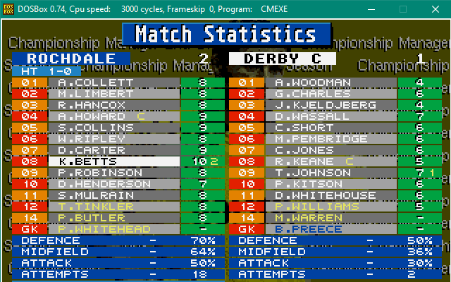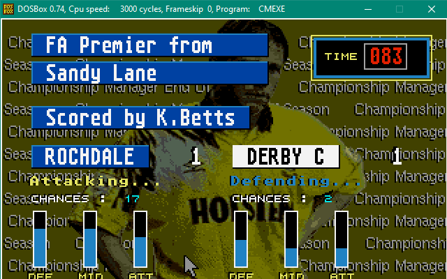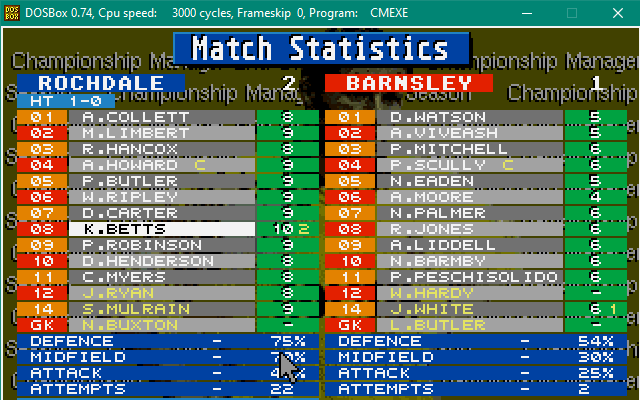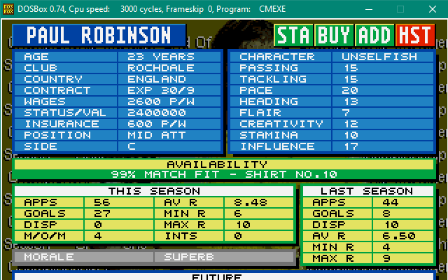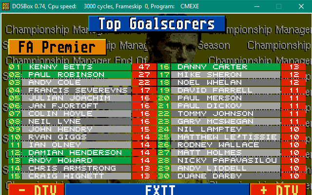 Our run in is a bit of a party as we win 3, draw 1, beating Forest 2-0 to dent their survival hopes, smashing Palace in a 5-2 goalfest, and finishing off with a great 4-0 defeat of Leeds, Robinson scoring a hattrick and giving us hope there’s life without Betts next season! We ultimately finish 20 points ahead of Derby, who themselves are 10 points ahead of 3rd and 4th place Swindon and Newcastle.