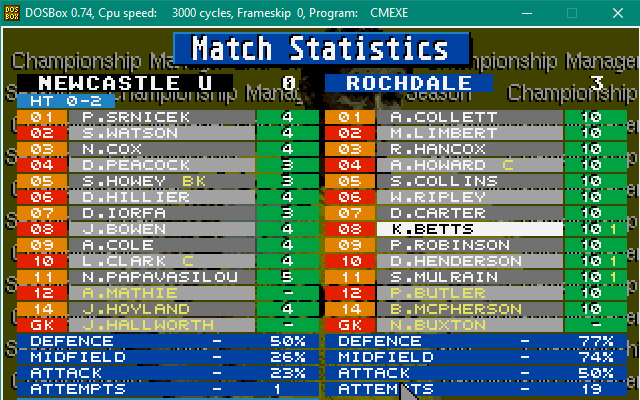 We go to St James Park knowing a win will make us uncatchable and give us the title, and our confidence is sky high following our cup triumph, and it shows as we completely dominate Newcastle, not giving them a sniff of a chance and going in 2-0 up at the break thanks to Henderson and Betts. Mulrain gets a third after half time and we see out the game in perfect fashion, 10’s across the board! Champions once again!